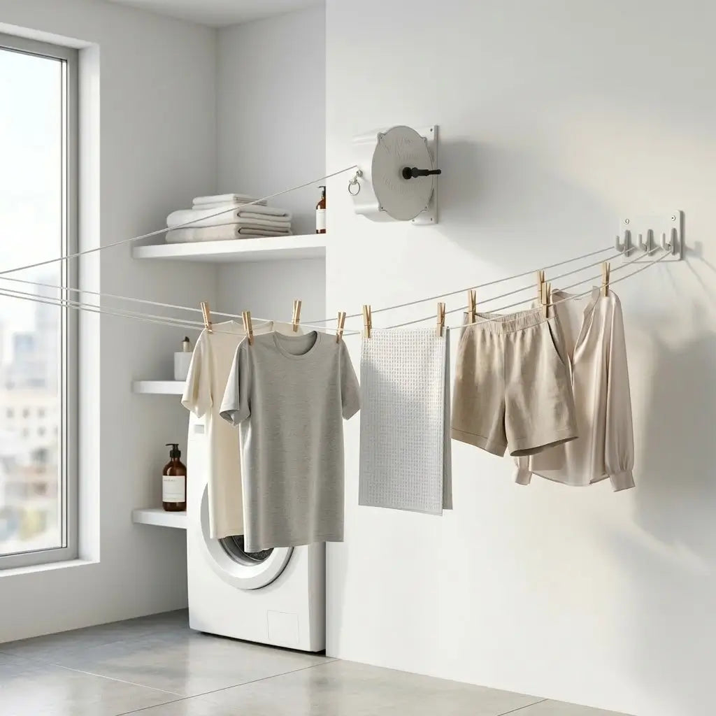 Chega de Varal Ocupando Espaço o Dia Todo — 30 Metros Retráteis Prontos para Usar e Sumir