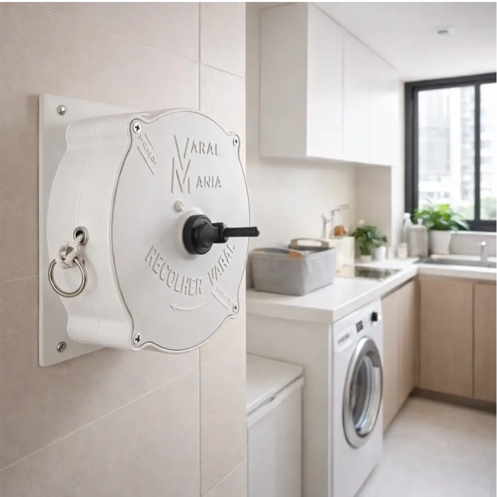 Roupa secou? Um gesto e a corda desaparece. Sua varanda, área de serviço ou quintal volta a ser seu — sem varal no caminho, sem visual de bagunça, sem visita te pegando no flagra.